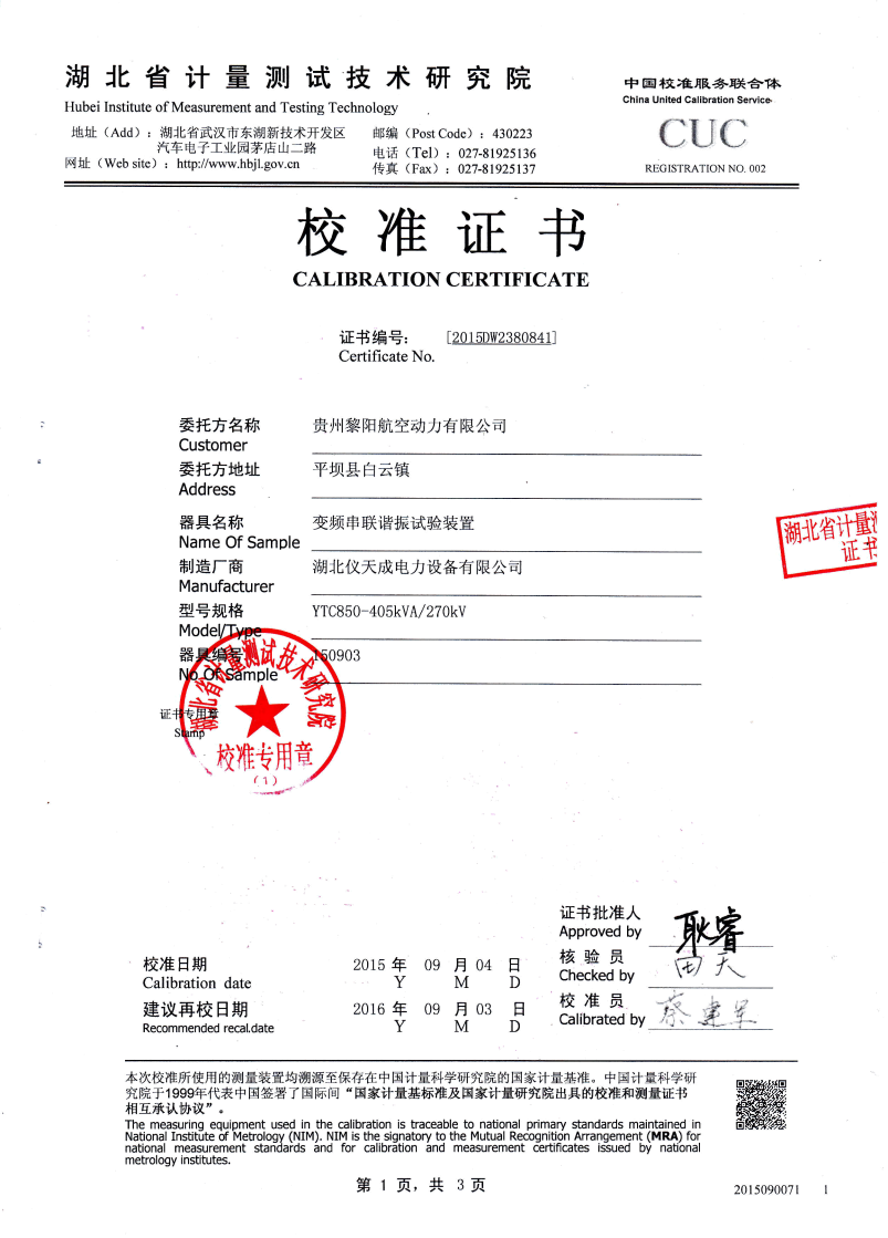 YTC850-810/270 30kW 30kVA 45kV/2A/9臺(tái) 300kV 110kV套管、GIS、支柱絕緣子、隔離開(kāi)關(guān)